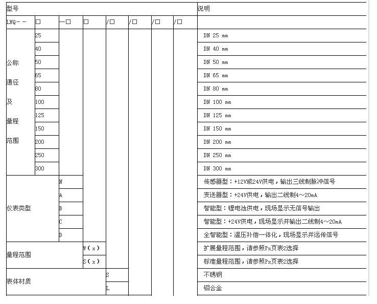 用戶在選型時,應根據(jù)管道公稱壓力、介質(zhì)較高壓力、介質(zhì)溫度、介質(zhì)組分情況、流量范圍及信號輸出要求合理選擇流量計的型號規(guī)格。